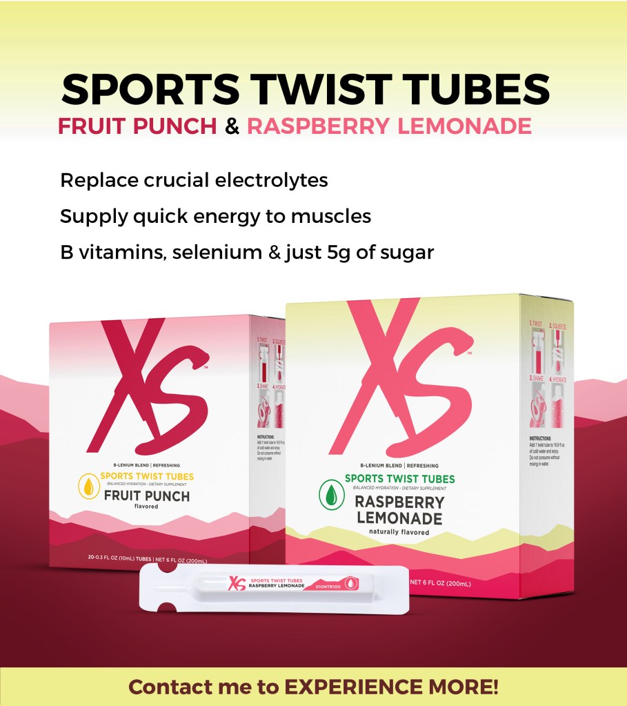 I want to introduce you to a healthier sports drink! XS Sports Twist Tubes with the option of two delicious flavors: Fruit Punch or Raspberry Lemonade.